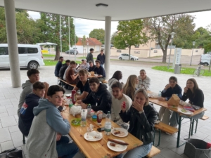 Am 25.-26.09.2024 fanden die Team-Tage für die Klasse WG 11/2 statt. Zu Beginn machten wir ein paar Spiele, um uns gegenseitig in der Klasse besser kennenzulernen, z.B. reihten wir uns vom Ältesten bis zum Jüngsten auf, oder wer am Nördlichsten und am Südlichsten wohnt. Danach wurden wir in 2er-Gruppen eingeteilt und bekamen Steckbriefe von unseren Klassenlehrern Frau Voss und Herrn Schäcke ausgeteilt. Diese füllten wir gegenseitig aus. Anschließend stellten wir uns gegenseitig vor der ganzen Klasse vor, um ein paar mehr Informationen über unsere Mitschüler zu erfahren.