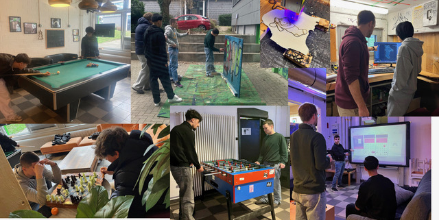 Dann durften wir machen, worauf wir Lust hatten. Wir hörten unsere Lieblingsmusik. Einige von uns spielten Billard und Tischkicker, andere sprayten ein Graffiti und stellten Holzanhänger mit dem Laser her.