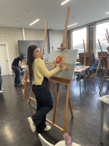 Das Programm war ebenso vielseitig wie informativ: Die angebotenen Hausführungen wurden rege genutzt und gaben spannende Einblicke in unsere Schule. Großen Anklang fand der Blick in das digitale Schulleben an der BSBK. Ein besonderes Highlight stellte der Live-Kunstunterricht dar: Interessierte Besucherinnen und Besucher konnten hautnah miterleben, wie während des Infotags beeindruckende Meisterstücke auf der Leinwand entstanden – ein kreativer Blick in den Schulalltag, der viele begeisterte. Der Seminarkurs überzeugte zudem mit einem liebevoll und aufwendig dekorierten Stand, während alle Fachräume von den jeweiligen Fachlehrkräften engagiert und anschaulich vorgestellt wurden. Im Foyer rundeten der Schulsanitätsdienst, ein wunderschöner SMV-Stand, die Berufsorientierung sowie das Beratungsnetz das Angebot perfekt ab.