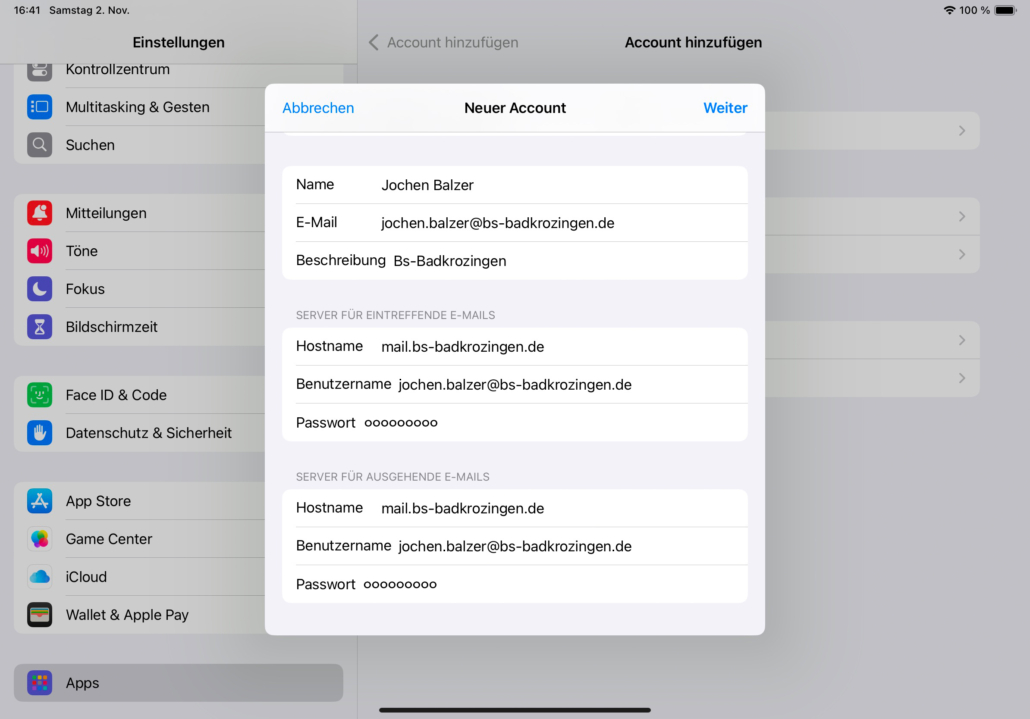 Einstellungen – Apps – Mail – Mail-Accounts – Account hinzufügen