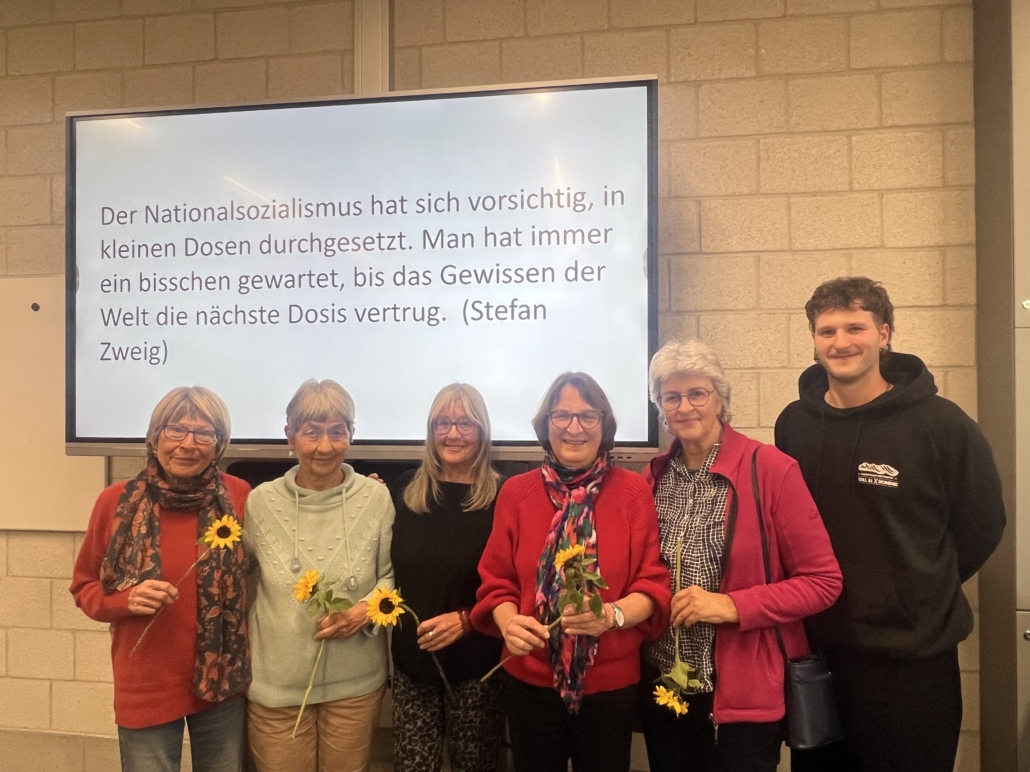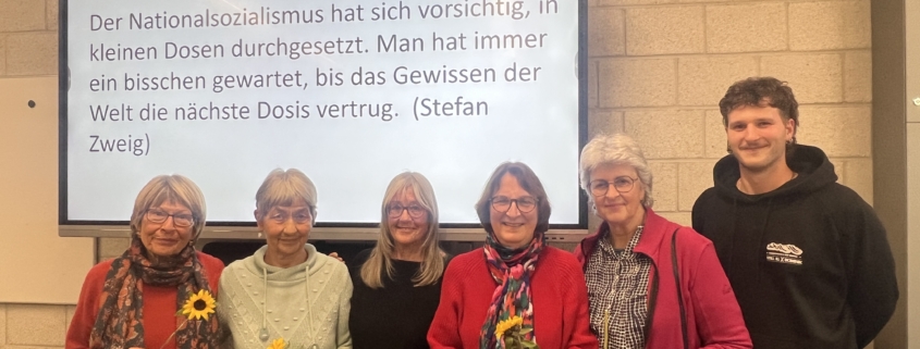 Am 03.11.2025 besuchten uns im Geschichtsunterricht eine ganz besondere Gruppe: die Initiative „Omas gegen Rechts“. Fünf engagierte Frauen aus dieser Bewegung sowie ein jüngerer Vertreter der Initiative „Freiburg gegen Rechts“ kamen zu uns, um über ihre Arbeit, ihre Erfahrungen und ihre Motivation zu sprechen, sich aktiv gegen Rechtsextremismus, Diskriminierung und Hass in unserer Gesellschaft einzusetzen.
