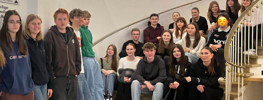 Am 13. April besuchte der Deutsch 5-Stünder-Kurs von Frau Voss aus der Jahrgangsstufe 1 als Patenklasse des Theaterstücks “Der Große Gopnik” die Premierenvorstellung. Die Geschichte handelt von einem Gópnik (russ.: “Hinterhof-Rowdy”, der sich an die Macht kämpft und dabei Konflikte zwischen Macht und russischer Kultur entstehen. Einige Zeit schon begleitete der Kurs in Zusammenarbeit mit Balthazar Bender, der am Theater Freiburg für den Bereich Education Schauspiel und Junges Theater zuständig ist, die Entstehung eines solchen Theaterstückes – von der Führung durch das Stadttheater bis hin zur Hauptprobe und einem Nachgespräch. Es war sehr interessant zu sehen, wie solch ein Theaterstück entsteht und was auch hinter den Kulissen alles passiert.